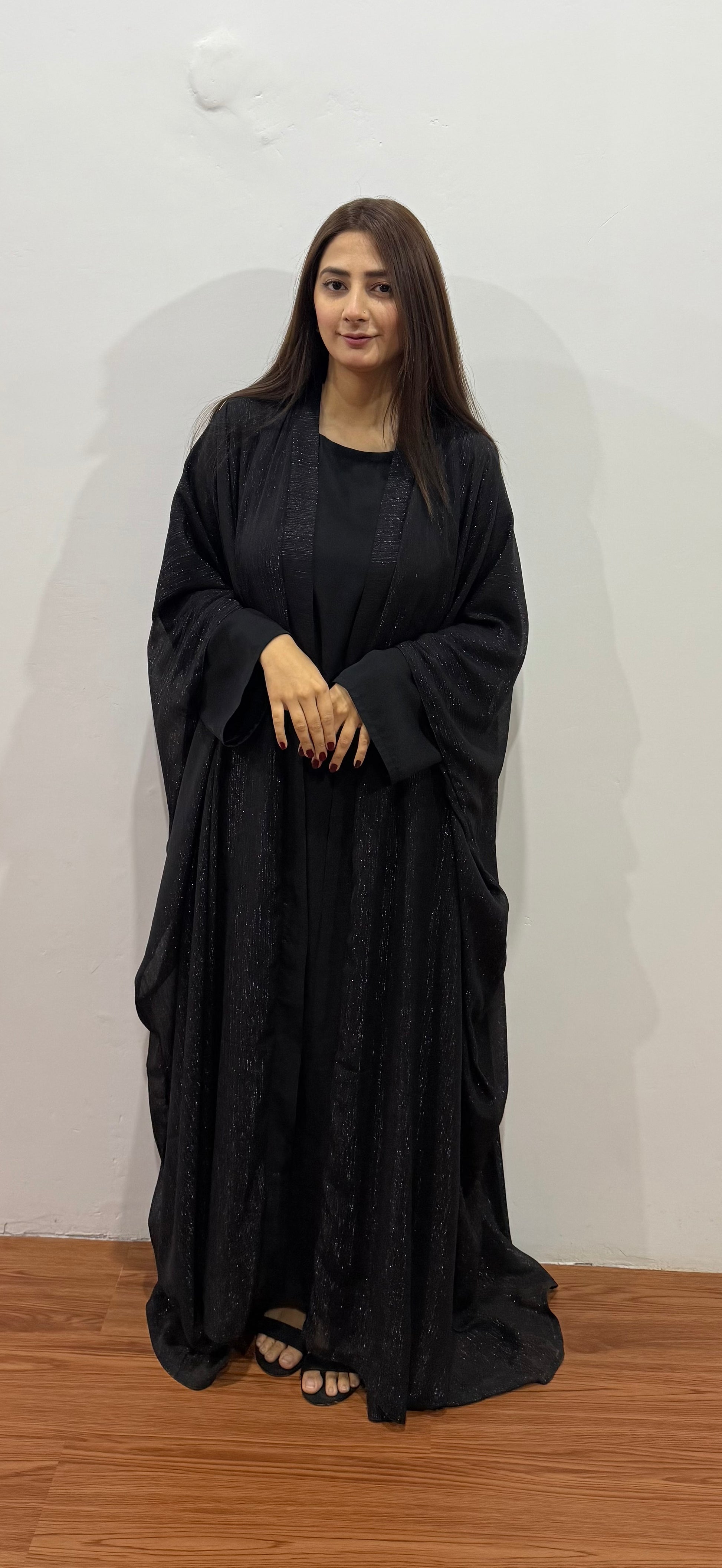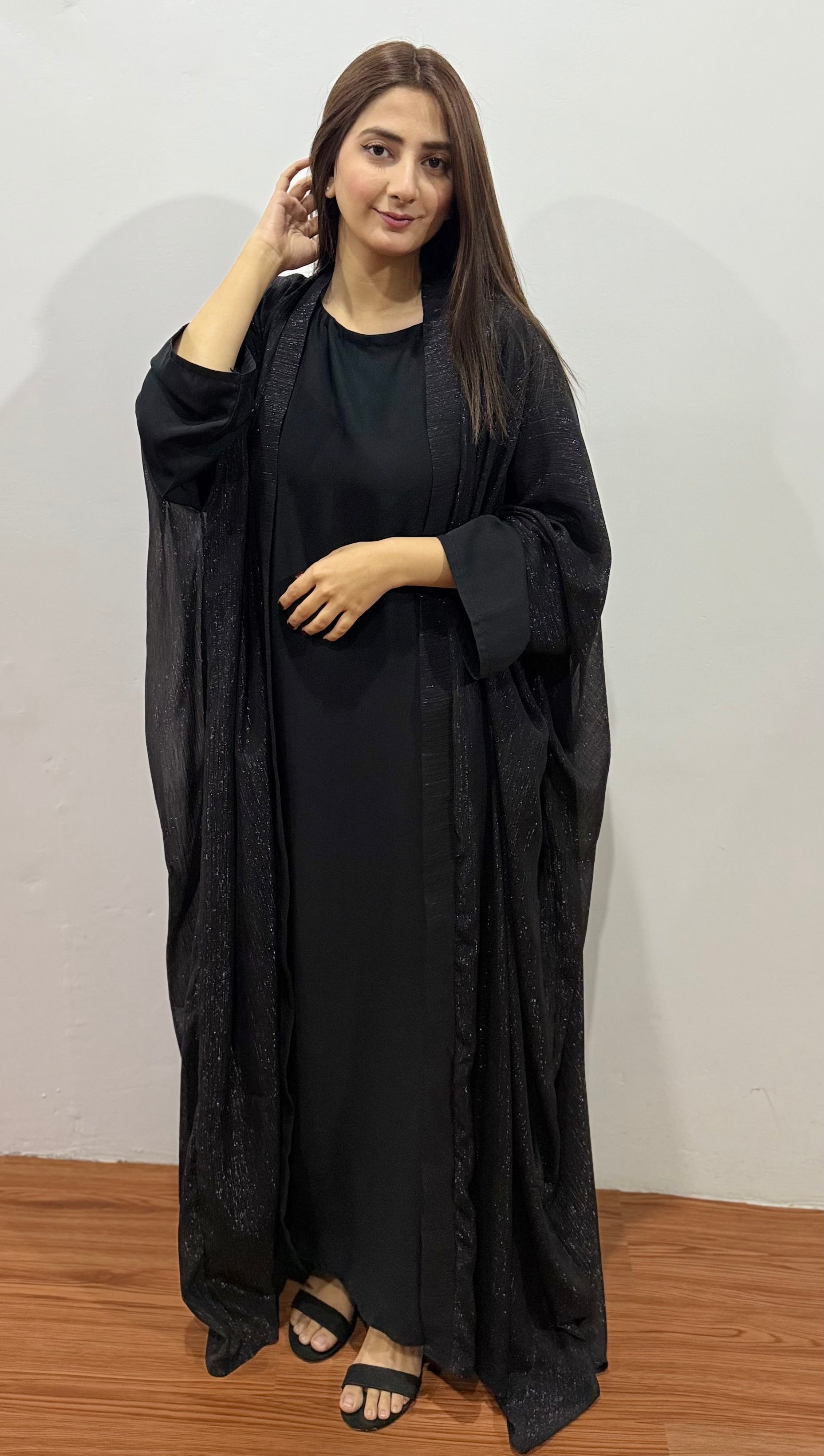 Introducing our luxurious 3-piece Abaya Set, designed for those who appreciate elegance and sophistication. This stunning ensemble features a beautifully crafted outer Abaya made from premium Moonlight fabric in a deep black shade, offering a subtle shimmer that exudes royal charm and opulence—perfect for a Dubai Sheikh Princess look. The inner piece is made from royal soft satin, ensuring a comfortable and smooth fit, while maintaining the refined, regal aesthetic. Completing the set is a matching hijab, offering a seamless and coordinated appearance. Whether for a special occasion or a refined everyday look, this Abaya set promises to make you feel graceful and distinguished with every wear.