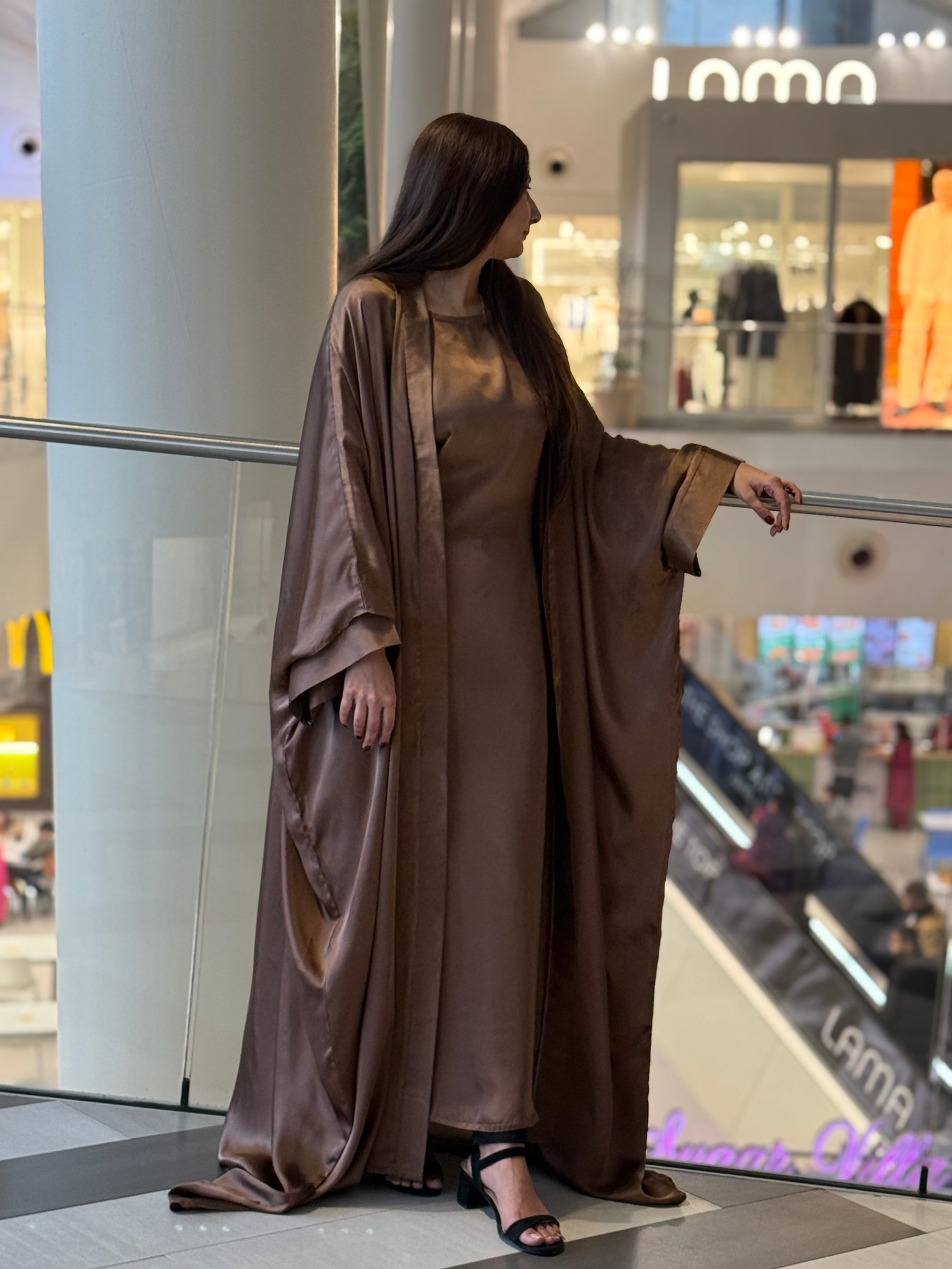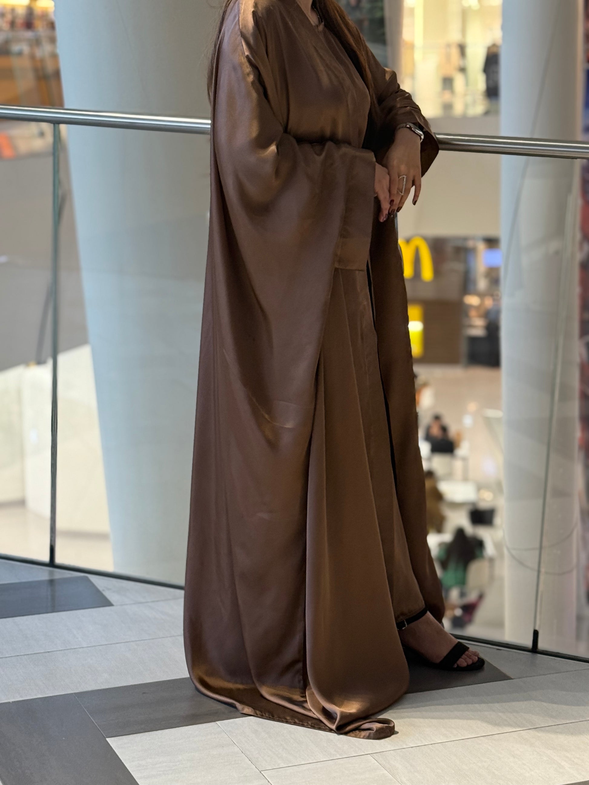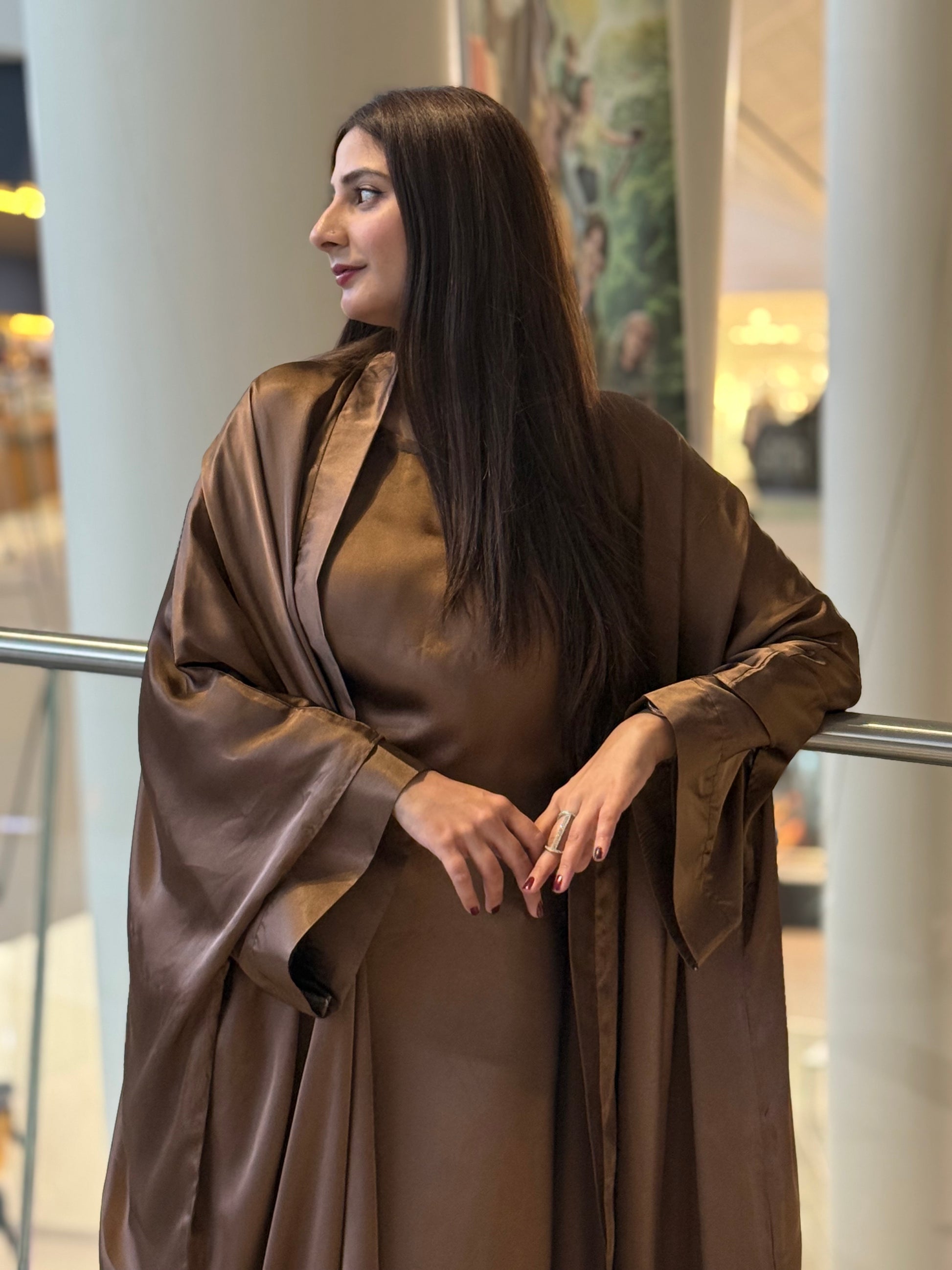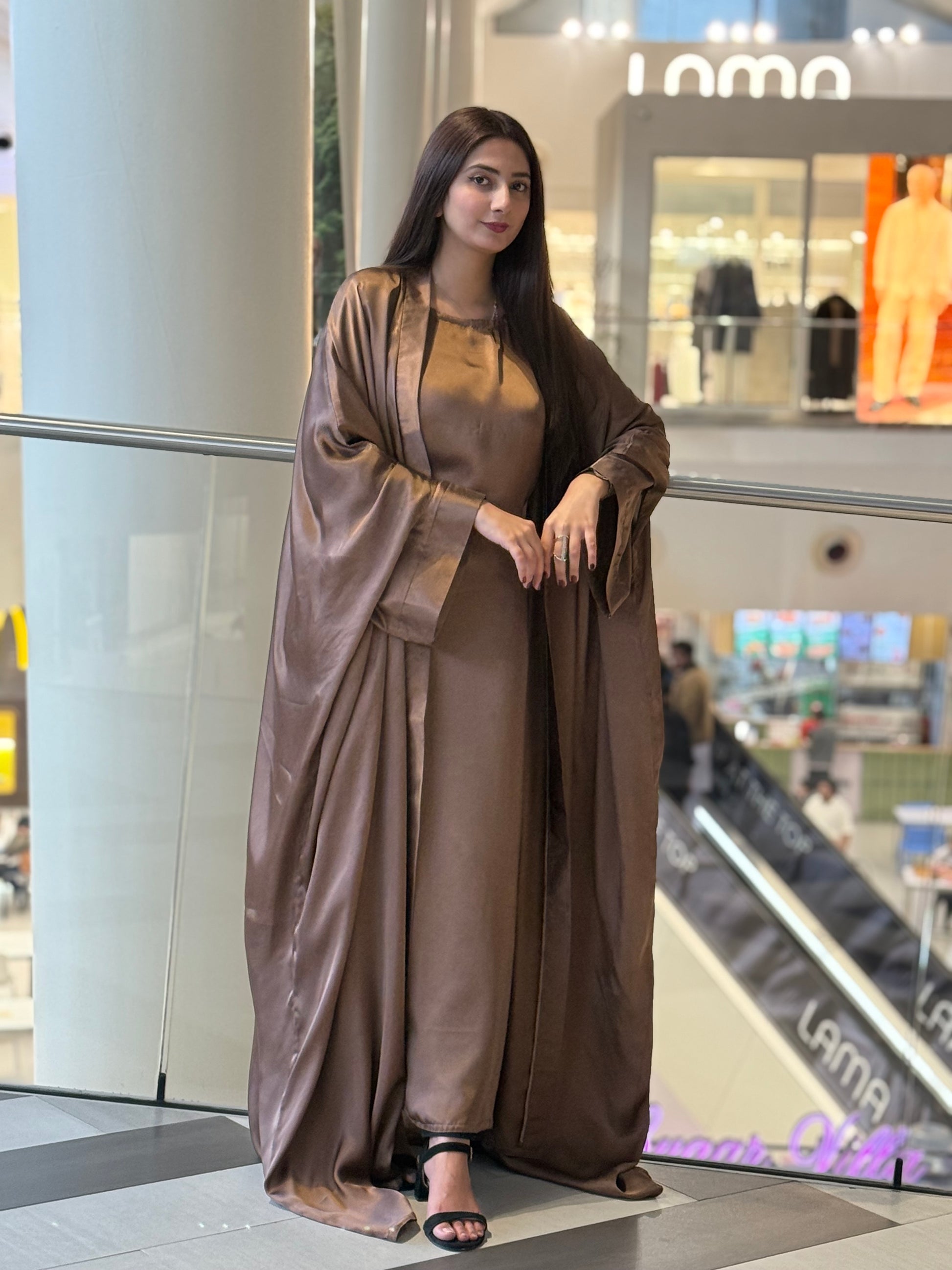 Discover timeless elegance with our 3-piece Abaya Set in luxurious copper soft satin. The outer Abaya boasts a free-flowing, relaxed silhouette, offering a sense of effortless luxury. The inner piece features adjustable strings, allowing you to customize the fit to your desired shape. This versatile design effortlessly combines comfort with class, giving you a regal, Arabic royal girl look. The set is completed with a matching satin hijab, perfectly complementing the ensemble for a sophisticated and coordinated appearance. Ideal for both special occasions and everyday elegance, this Abaya set is the epitome of luxury and style.