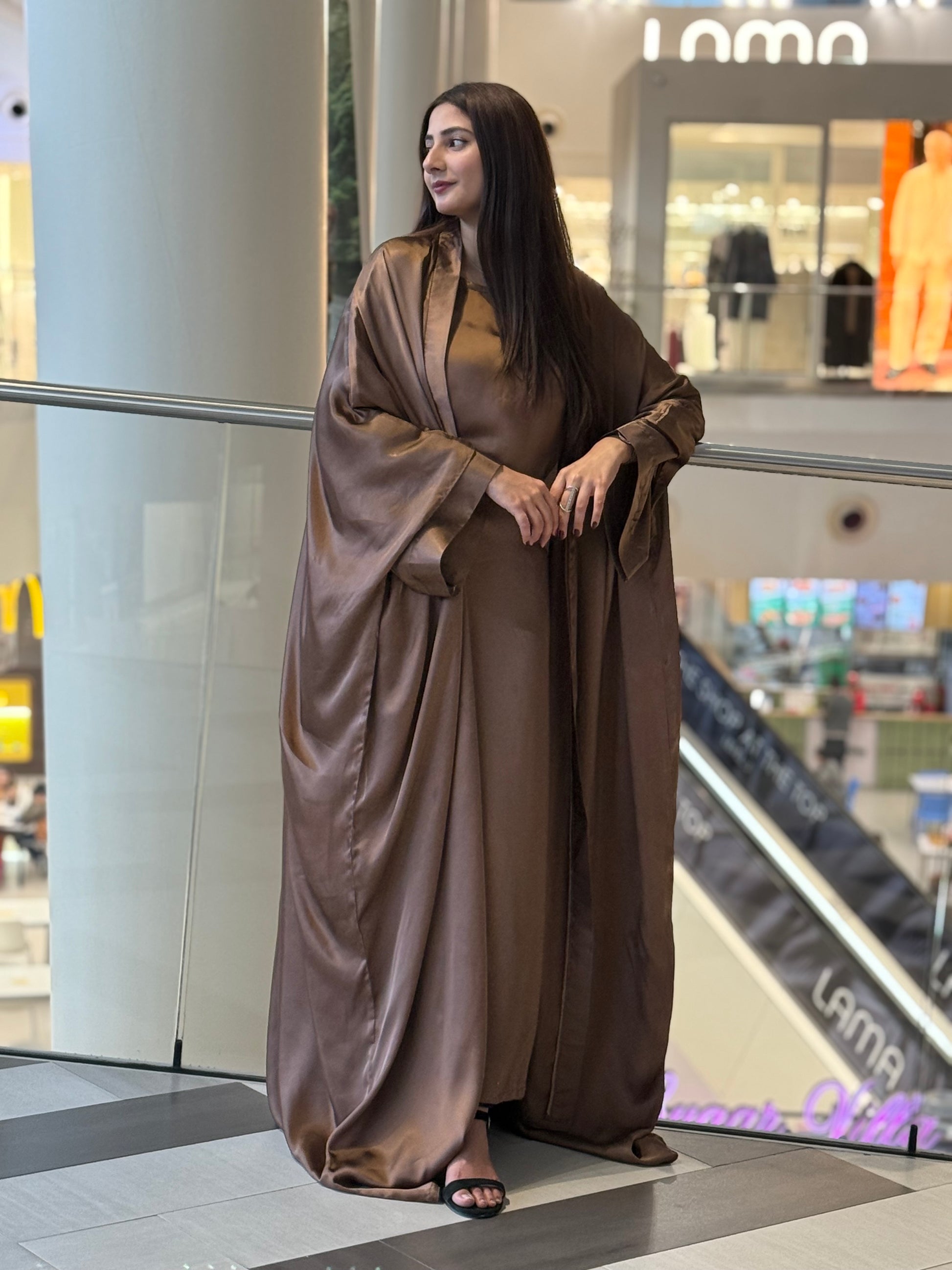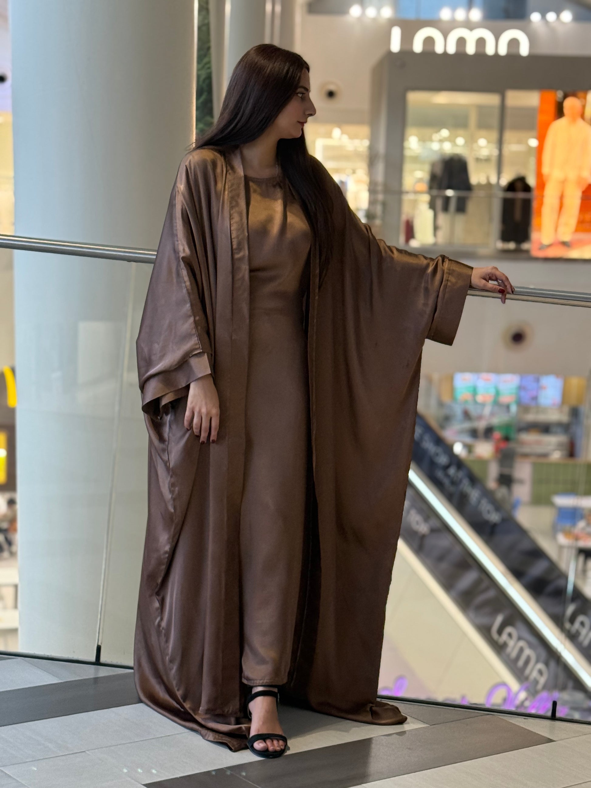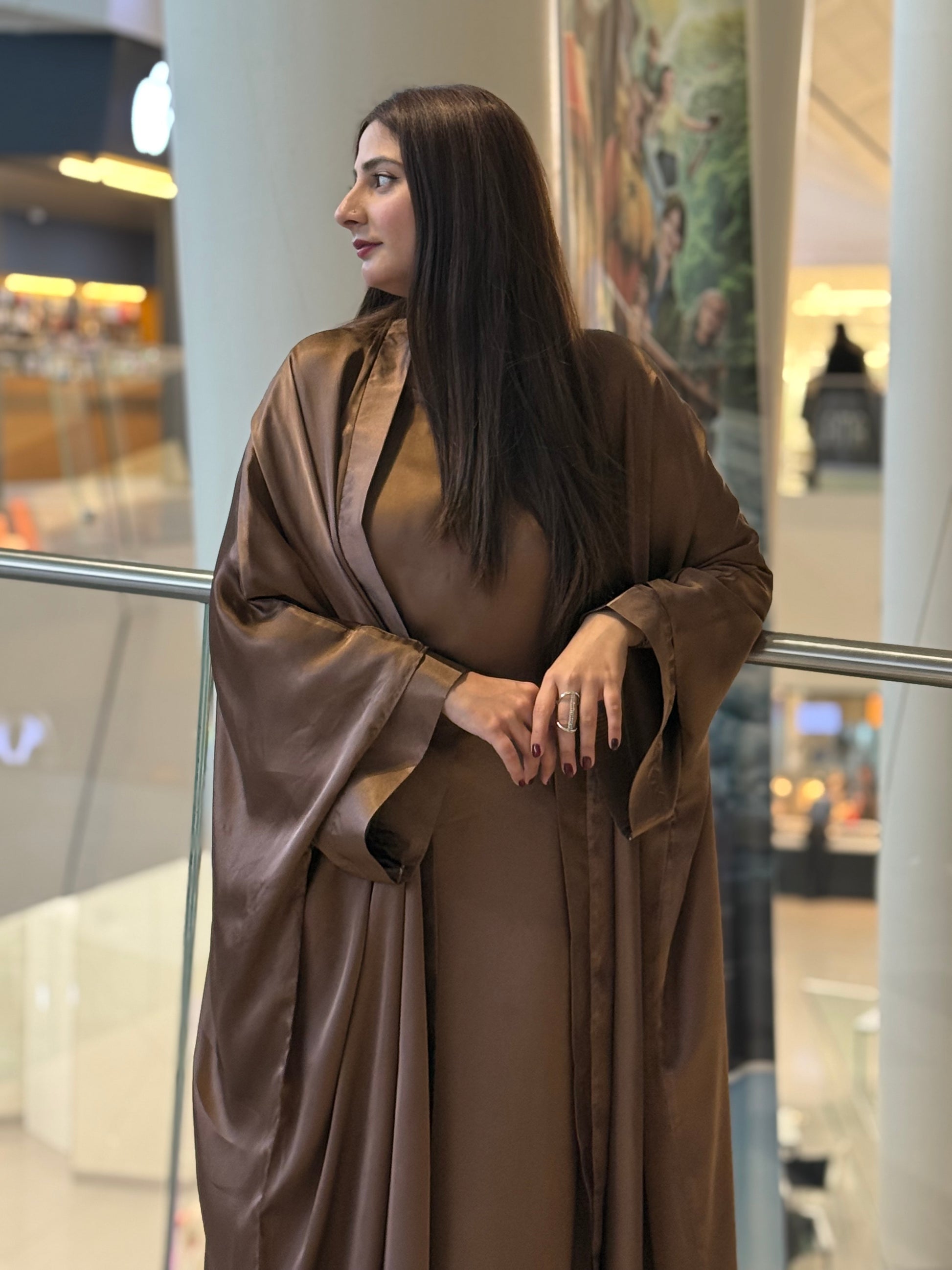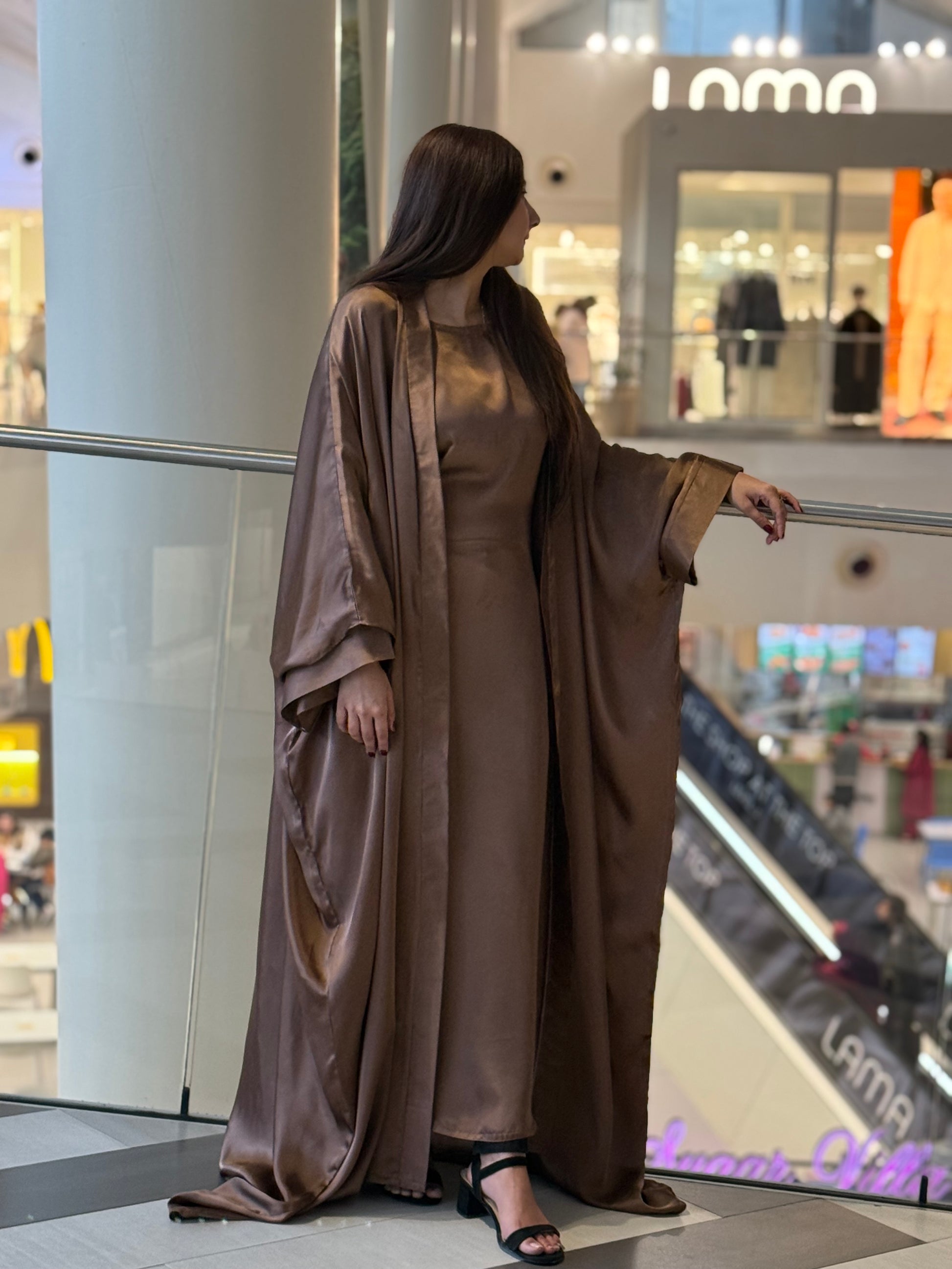 Discover timeless elegance with our 3-piece Abaya Set in luxurious copper soft satin. The outer Abaya boasts a free-flowing, relaxed silhouette, offering a sense of effortless luxury. The inner piece features adjustable strings, allowing you to customize the fit to your desired shape. This versatile design effortlessly combines comfort with class, giving you a regal, Arabic royal girl look. The set is completed with a matching satin hijab, perfectly complementing the ensemble for a sophisticated and coordinated appearance. Ideal for both special occasions and everyday elegance, this Abaya set is the epitome of luxury and style.